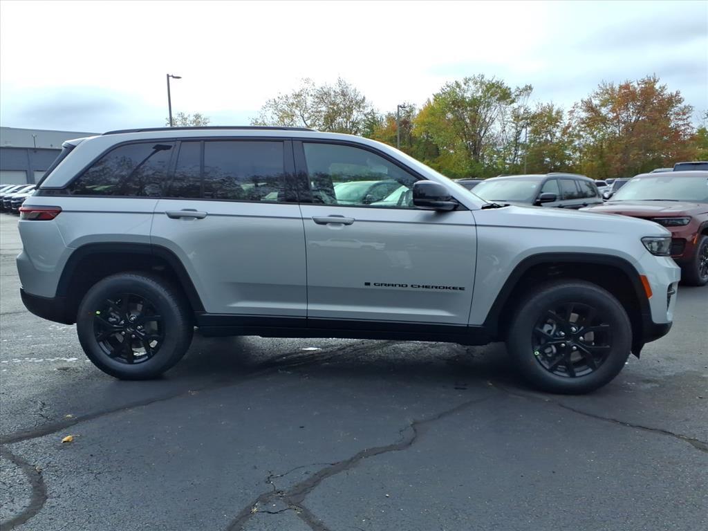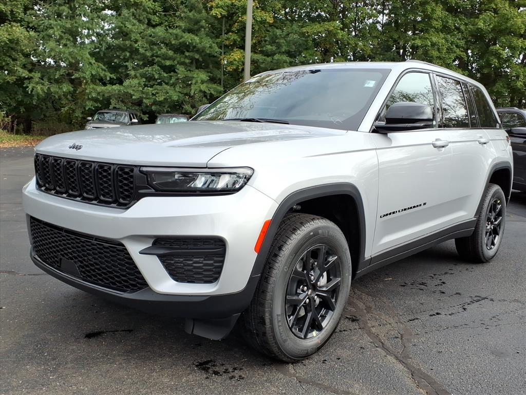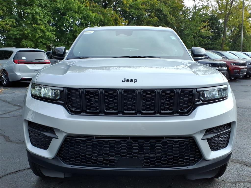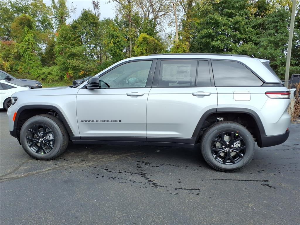 Silver Zynith 2025 Jeep Grand Cherokee Altitude X 4WD 8-Speed Automatic 3.6L V6 24V VVT 4WD, 115V Auxiliary Power Outlet, 4-Wheel Disc Brakes, 6 Speakers, ABS brakes, Air Conditioning, Alloy wheels, Altitude X, AM/FM radio: SiriusXM, Anti-whiplash front head restraints, Automatic temperature control, Black Headliner, Brake assist, Bumpers: body-color, Capri Leatherette/Suede Seats, Cloth Seats, Compass, Delay-off headlights, Delete Laredo Badge, Driver door bin, Driver vanity mirror, Dual front impact airbags, Dual front side impact airbags, Electronic Stability Control, Emergency communication system, Four wheel independent suspension, Front anti-roll bar, Front Bucket Seats, Front Center Armrest w/Storage, Front dual zone A/C, Front License Plate Bracket, Front reading lights, Fully automatic headlights, Gloss Black Exterior Accents, Heated door mirrors, Heated Front Seats, Heated Steering Wheel, Illuminated entry, Knee airbag, Low tire pressure warning, Model Year Tracking, Normal Duty Suspension, Occupant sensing airbag, Outside temperature display, Overhead airbag, Overhead console, Panic alarm, ParkView Rear Back-Up Camera, Passenger door bin, Passenger vanity mirror, Power door mirrors, Power driver seat, Power Liftgate, Power steering, Power Sunroof, Power windows, Quick Order Package 23M Altitude X, Radio data system, Rain Sensitive Windshield Wipers, Rear anti-roll bar, Rear reading lights, Rear window defroster, Rear window wiper, Remote keyless entry, Remote Start System, Security system, Selectable Tire Fill Alert, Speed control, Speed-Sensitive Wipers, Split folding rear seat, Spoiler, Steering wheel mounted audio controls, Tachometer, Telescoping steering wheel, Tilt steering wheel, Traction control, Trip computer, Variably intermittent wipers, Voltmeter, Wheels: 18x 8Fully Painted Aluminum 1, Wireless Charging Pad. 19/26 City/Highway MPG