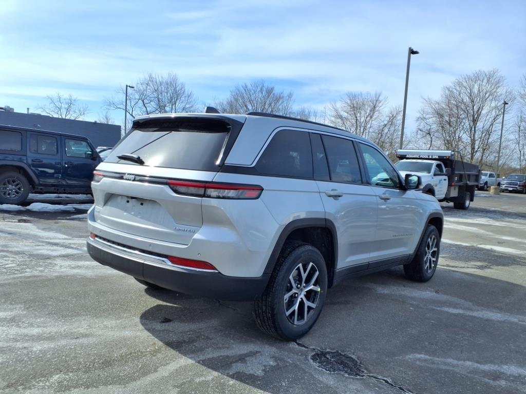 Silver Zynith 2025 Jeep Grand Cherokee Limited 4WD 8-Speed Automatic 3.6L V6 24V VVT 4WD, 4-Wheel Disc Brakes, 6 Speakers, ABS brakes, Active Noise Control System, Air Conditioning, Alloy wheels, AM/FM radio: SiriusXM with 360L, Anti-whiplash front head restraints, Audio memory, Auto High-beam Headlights, Automatic temperature control, Brake assist, Bumpers: body-color, Capri Leatherette Seats, Compass, Delay-off headlights, Driver door bin, Driver vanity mirror, Dual front impact airbags, Dual front side impact airbags, Dual-Pane Panoramic Sunroof, Electronic Stability Control, Emergency communication system, Four wheel independent suspension, Front anti-roll bar, Front Bucket Seats, Front Center Armrest w/Storage, Front dual zone A/C, Front fog lights, Front License Plate Bracket, Front reading lights, Fully automatic headlights, Garage door transmitter, Heated door mirrors, Heated front seats, Heated rear seats, Heated steering wheel, Illuminated entry, Knee airbag, Low tire pressure warning, Memory seat, Model Year Tracking, Navigation System, Normal Duty Suspension, Occupant sensing airbag, Outside temperature display, Overhead airbag, Overhead console, Panic alarm, ParkView Rear Back-Up Camera, Passenger door bin, Passenger vanity mirror, Power door mirrors, Power driver seat, Power Liftgate, Power passenger seat, Power steering, Power windows, Quick Order Package 22E, Radio data system, Rear anti-roll bar, Rear reading lights, Rear window defroster, Rear window wiper, Remote keyless entry, Security system, Speed control, Speed-Sensitive Wipers, Split folding rear seat, Spoiler, Steering wheel mounted audio controls, Tachometer, Telescoping steering wheel, Tilt steering wheel, Traction control, Trip computer, Turn signal indicator mirrors, Variably intermittent wipers, Voltmeter, Wheels: 18x 8Polished/Painted Aluminum. 19/26 City/Highway MPG