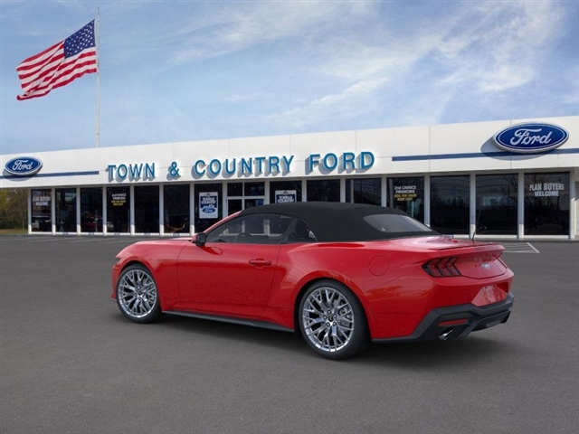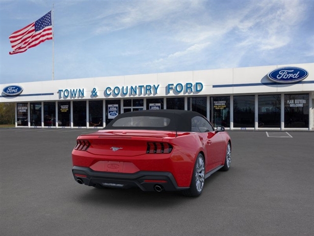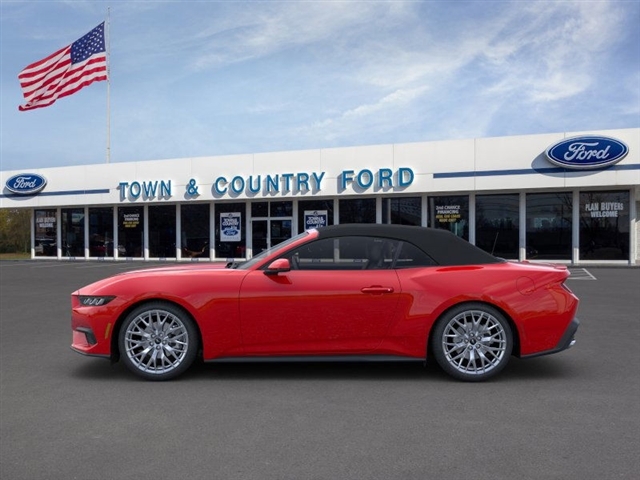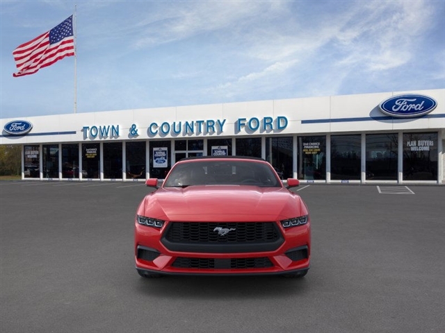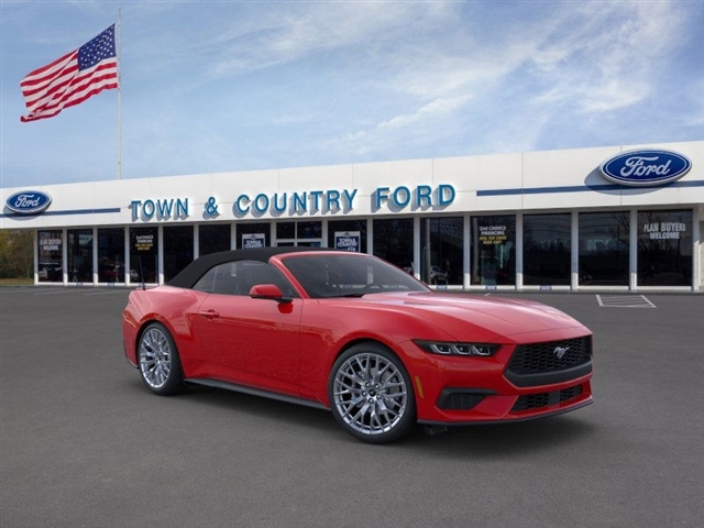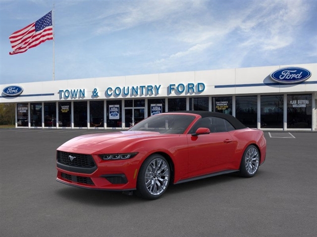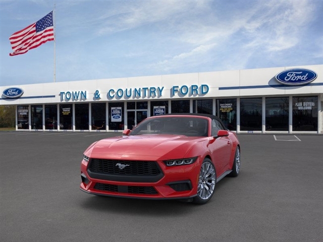This vehicle is a 2025 Ford Mustang EcoBoost Premium, with low mileage of 198 miles. It is a RWD, 2.3 liter 4 cylinder engine, and turbocharged, making it a powerful and efficient motorcar. The exterior of the car is a striking red, while the interior is a luxurious black. This car is sure to turn heads wherever it goes, and its advanced technology and safety features make it an ideal choice for anyone looking for a reliable and comfortable ride. Contact Details: Town and Country Ford - Louisville, 6015 Preston Hwy, Louisville, KY, 40219, tbradley@tacford.com, (502) 964-8131.