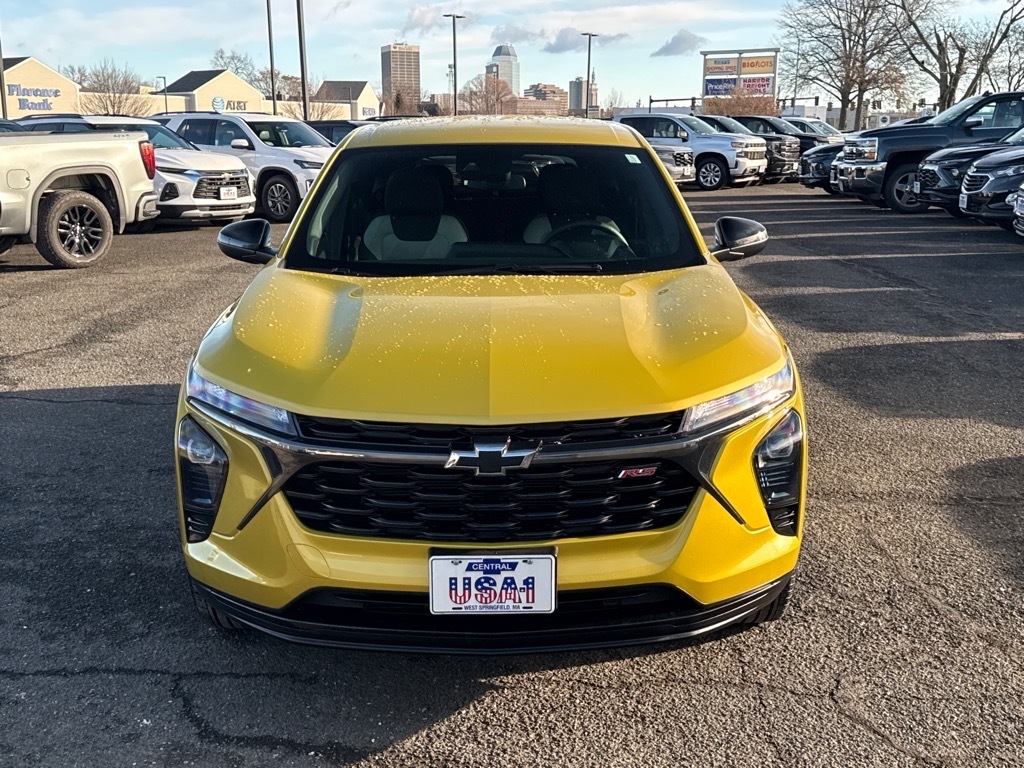 2024 Chevrolet Trax RS for sale at Central Chevrolet in West Springfield, MA. This exceptional used Trax boasts a low 10,500 miles, highlighting its Low Mileage status, and has been meticulously reconditioned, evidenced by a clean Carfax report, only one previous owner, and comprehensive services including an oil change, new wipers, engine air filter, cabin air filter, HVAC service, a full detail, battery charging system service, a pre-delivery safety inspection, and the addition of remote start for your convenience. Under the hood, you'll find a powerful and efficient ECOTEC 1.2L Turbo engine paired with a smooth 6-speed automatic transmission, delivering an impressive 30 MPG combined city/highway rating, making it an economical choice for any driver in Western Massachusetts. This front-wheel-drive Trax 1RS comes in a vibrant Nitro Yellow Metallic exterior and a stylish Jet Black/Gray with Red interior, offering a striking combination. Standard equipment includes a responsive 8-inch Chevrolet Infotainment 3 system with a diagonal color touchscreen, Apple CarPlay and Android Auto compatibility (though not explicitly listed, this is a common feature for this infotainment system), active noise cancellation, and a 4-speaker audio system. For your comfort and convenience, this Trax features a flat-bottom heated steering wheel, driver and front passenger heated seats, and deep-tinted rear windows and liftgate. Safety is paramount with the included Chevy Safety Assist suite, offering Forward Collision Alert, Automatic Emergency Braking, Front Pedestrian Braking, Lane Keep Assist with Lane Departure Warning, Following Distance Indicator, and IntelliBeam headlamp control. Advertised price may be negotiable & includes $695 Doc Fee. Pricing reflects $2,000 Push, Pull, or Tow Minimum Trade Allowance; price without trade-in is $2,000 higher. Tax, title, & reg extra. See centralchevyauto.com for complete details.