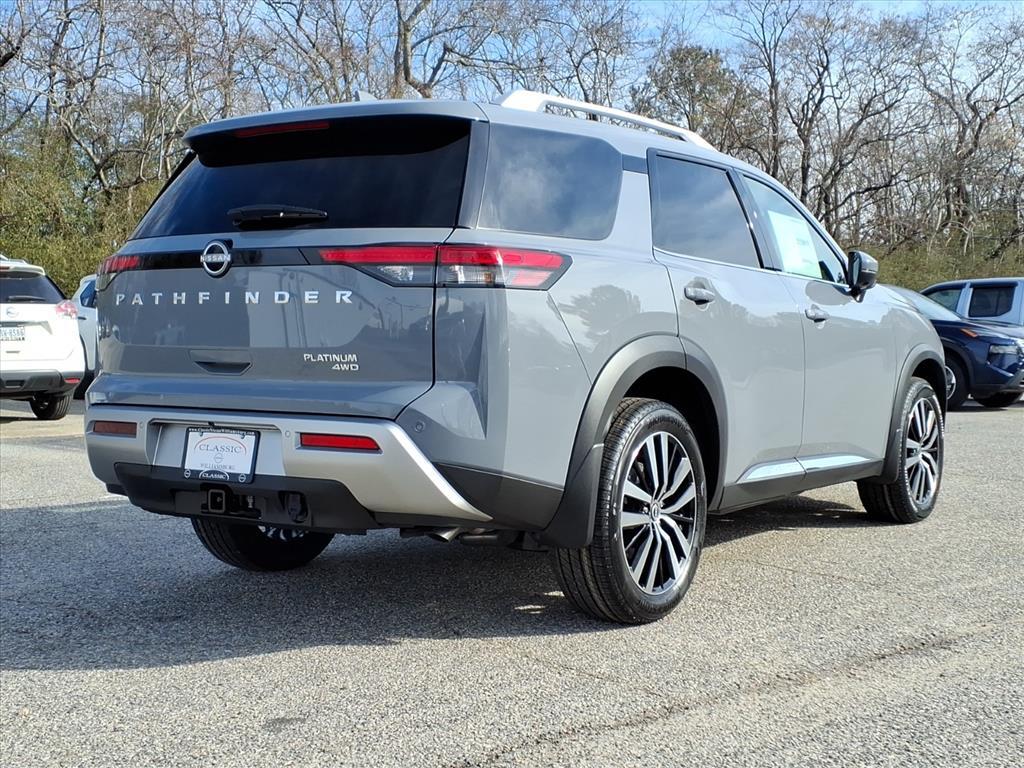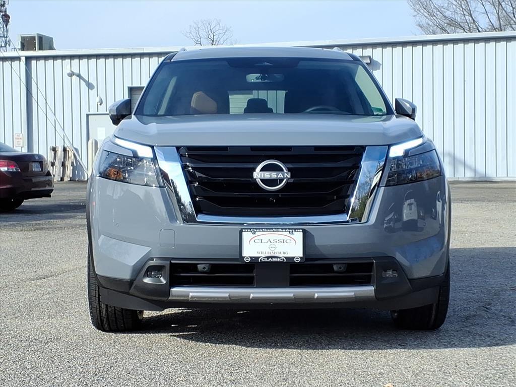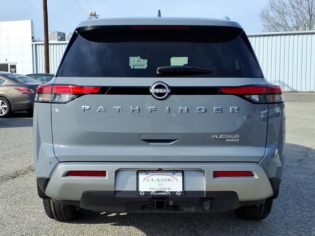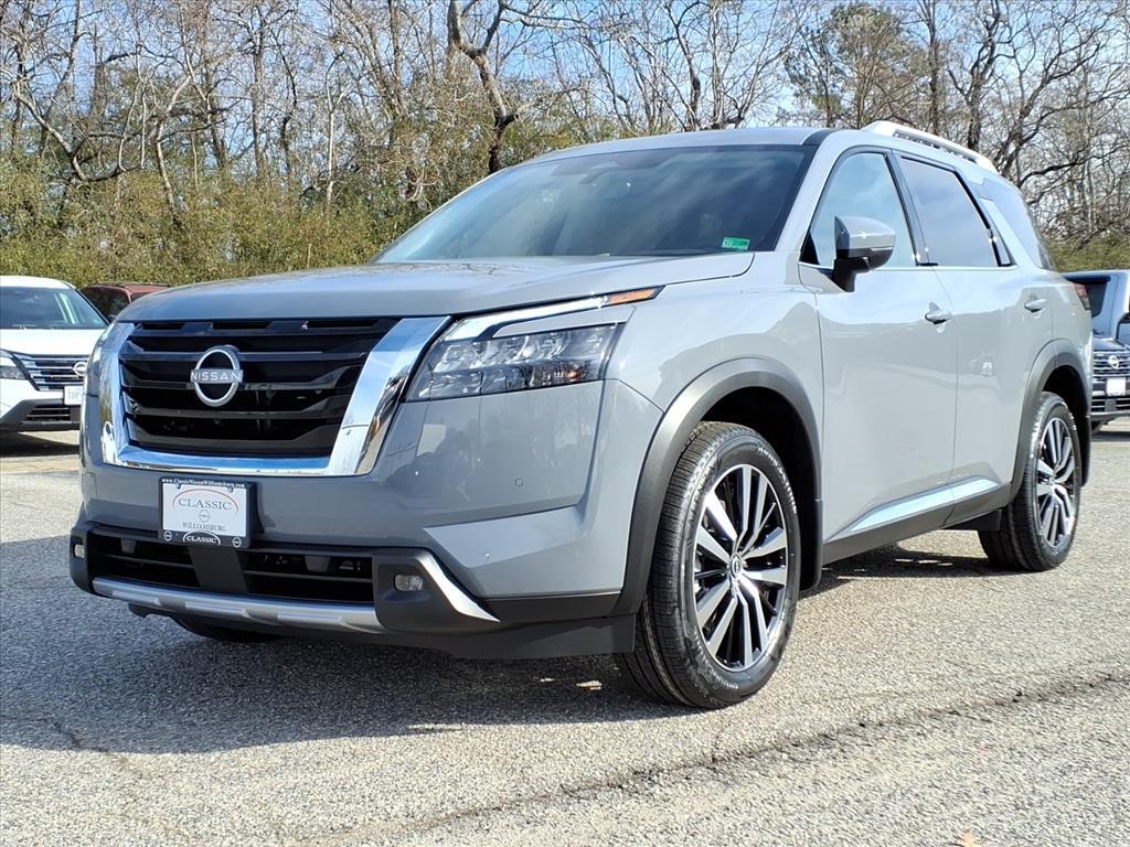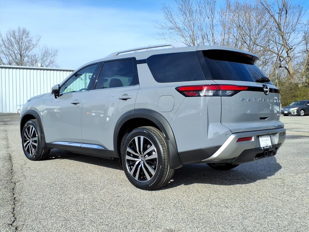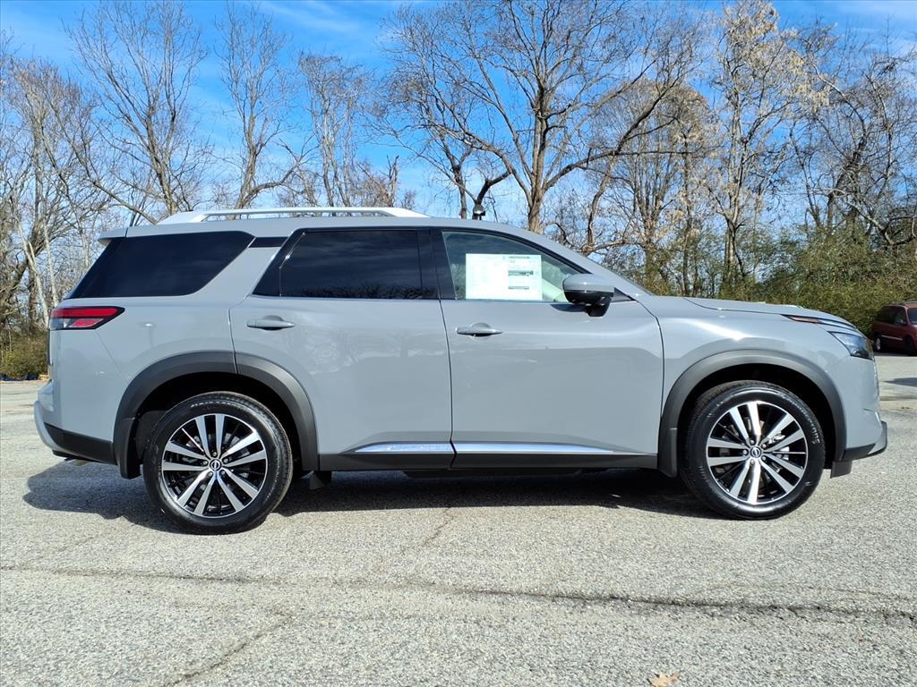 Recent Arrival! 2025 Nissan Pathfinder Platinum Boulder Gray Pearl 4WD 3.5L V6 DOHC 9-Speed Automatic 4WD, Fully Serviced To Current Date and Mileage, Service Records Available, Extended Service Programs Available, USB. Check out all these great options 4WD, 13 Speakers, 3rd row seats: bench, 4-Wheel Disc Brakes, ABS brakes, Air Conditioning, Alloy wheels, AM/FM radio: SiriusXM, Auto High-beam Headlights, Auto tilt-away steering wheel, Auto-dimming Rear-View mirror, Automatic temperature control, Bodyside moldings, Bose Premium Audio System, Brake assist, Bumpers: body-color, Climate Controlled Front Bucket Seats, Delay-off headlights, Driver door bin, Driver vanity mirror, Dual front impact airbags, Dual front side impact airbags, Electronic Stability Control, Emergency communication system, Exterior Parking Camera Rear, Four wheel independent suspension, Front anti-roll bar, Front Bucket Seats, Front Center Armrest, Front dual zone A/C, Front reading lights, Fully automatic headlights, Garage door transmitter: HomeLink, Heads-Up Display, Heated door mirrors, Heated front seats, Heated rear seats, Heated steering wheel, Illuminated entry, Knee airbag, Leather steering wheel, LED Fog Lamps, Low tire pressure warning, Memory seat, Navigation system: NissanConnect with Navigation and Services, NissanConnect featuring Apple CarPlay and Android Auto, NissanConnect with Navigation and Services, Occupant sensing airbag, Outside temperature display, Overhead airbag, Overhead console, Panic alarm, Passenger door bin, Passenger vanity mirror, Power door mirrors, Power driver seat, Power Liftgate, Power moonroof, Power passenger seat, Power steering, Power windows, Premium Paint, Radio data system, Radio: AM/FM Audio System, Rain sensing wipers, Rear air conditioning, Rear anti-roll bar, Rear reading lights, Rear seat center armrest, Rear side impact airbag, Rear window defroster, Rear window wiper, Reclining 3rd row seat, Remote keyless entry, Security system, Semi-Aniline Leather-Appointed Seating Surfaces, Speed control, Speed-sensing steering, Speed-Sensitive Wipers, Split folding rear seat, Spoiler, Steering wheel memory, Steering wheel mounted audio controls, Tachometer, Telescoping steering wheel, Tilt steering wheel, Traction control, Trip computer, Turn signal indicator mirrors, Variably intermittent wipers, Ventilated front seats, and Wheels: 20x 8J Machined Alloy. Price does NOT include Tax, Title, License or Doc Fees. Price includes: $5000 - Nissan Cus