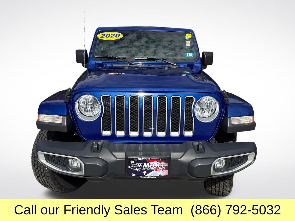 LOCAL TRADE, ONE OWNER, NEEDS NOTHING TO PASS STATE INSPECTION, BRAND NEW CABIN AIR FILTER, BRAND NEW ENGINE AIR FILTER, FRESH ENGINE OIL & FILTER, INSTALLED BOTH FRONT WIPER BLADES, INSTALLED REAR WIPER BLADE, PERFORMED 4-WHEEL COMPUTERIZED ALIGNMENT, BRAND NEW FRONT BRAKE ROTORS AND BRAKE PADS, PERFORMED BRAKE FLUID SERVICE, REAR DIFFERENTIAL FLUID SERVICE COMPLETED, REPLACED DRIVE BELT, FRONT DIFFERENTIAL FLUID SERVICE COMPLETED, PERFORMED TRANSMISSION FLUID FLUSH SERVICE, SERVICE REAR BRAKES FOR PROPER MOVEMENT, TIRES ARE EXCELLENT MEASURING 8/32, $1,637.88 WAS SPENT ON MECHANICAL WORK ALONG WITH REPLACING WEAR & TEAR ITEMS IF NEEDED. DRIVE WITH CONFIDENCE!, 2020 Jeep Wrangler Unlimited Sahara Iconic Design, Legendary Capability Own the adventure in the 2020 Jeep Wrangler Unlimited Sahara, the ultimate blend of off-road strength, open-air freedom, and everyday comfort. Powered by a 3.6-liter Pentastar V6 engine producing 285 horsepower and 260 lb-ft of torque, paired with a 6-speed manual or available 8-speed automatic transmission, this Wrangler delivers the authentic Jeep experience with modern efficiency. Its Command-Trac 4x4 system, high ground clearance, and heavy-duty suspension make it ready for rugged trails, sand, and snow alike. The Sahara trim adds refined touches with body-color fender flares, 18-inch polished aluminum wheels, and available LED lighting group for a distinctive, upscale look. Inside, enjoy premium comfort with leather-trimmed seats, Uconnect 4C NAV with 8.4-inch touchscreen, Apple CarPlay & Android Auto, and dual-zone automatic climate control. With removable doors, a fold-down windshield, and advanced safety features, the 2020 Jeep Wrangler Unlimited Sahara offers the perfect mix of adventure and sophistication built to go anywhere and look good doing it.. At McGee Toyota Of Epping we want you to know that all our vehicles are priced at a competitive value position to the market. We use an independent 3rd party software to research internet listings on all vehicles in the market so we can ensure that our prices are the most competitive out there. We do this simply so people choose us when they start searching for their next car. CARFAX One-Owner. Clean CARFAX. 2020 Jeep Wrangler Unlimited Sahara 4D Sport Utility Ocean Blue Metallic Clearcoat 4WD 8-Speed Automatic 2.0L I4 DOHC McGee Toyota is a Family-Owned Business and we enjoy assisting all of our guests buying their next vehicle!
