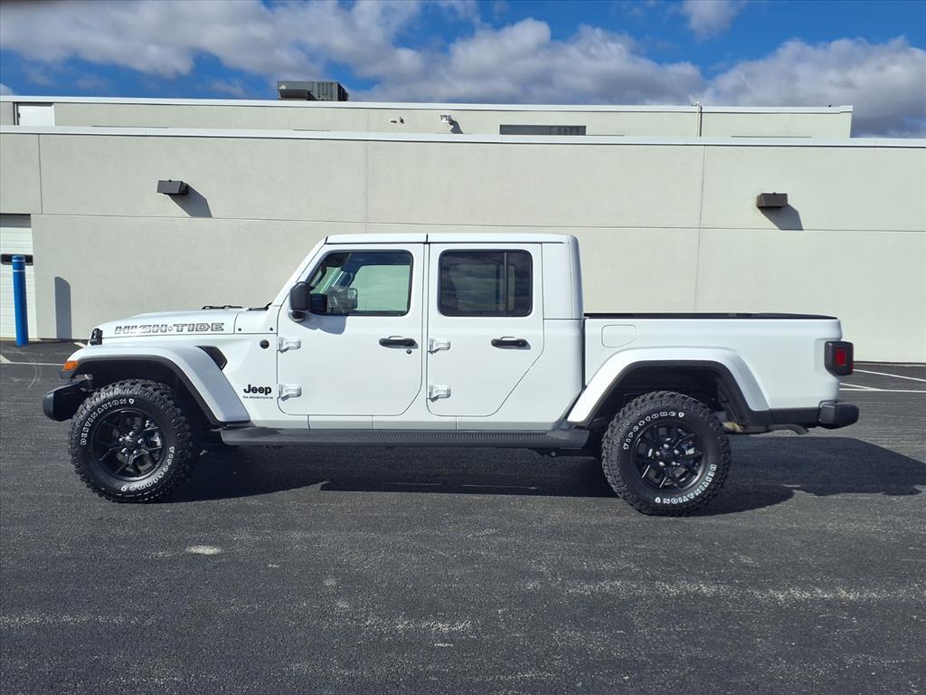 The 2025 Jeep Gladiator High Tide 44 delivers the perfect blend of rugged capability and everyday comfort, powered by a proven 3.6L V6 with an 8-speed automatic and part-time 4WD for confident performance on or off the road. The High Tide package adds standout styling with body-color hard top, distinctive decals, 17 black wheels, and off-road-ready suspension, while a spacious interior offers premium McKinley-trimmed seats, a 12.3 Uconnect touchscreen, and modern connectivity. With a 6,000-lb towing capacity, skid plates, trailer sway control, and advanced safety tech like Forward Collision Warning Plus, the Gladiator High Tide is as functional as it is funideal for drivers who want open-air freedom, truck utility, and true Jeep adventure capability in one package.