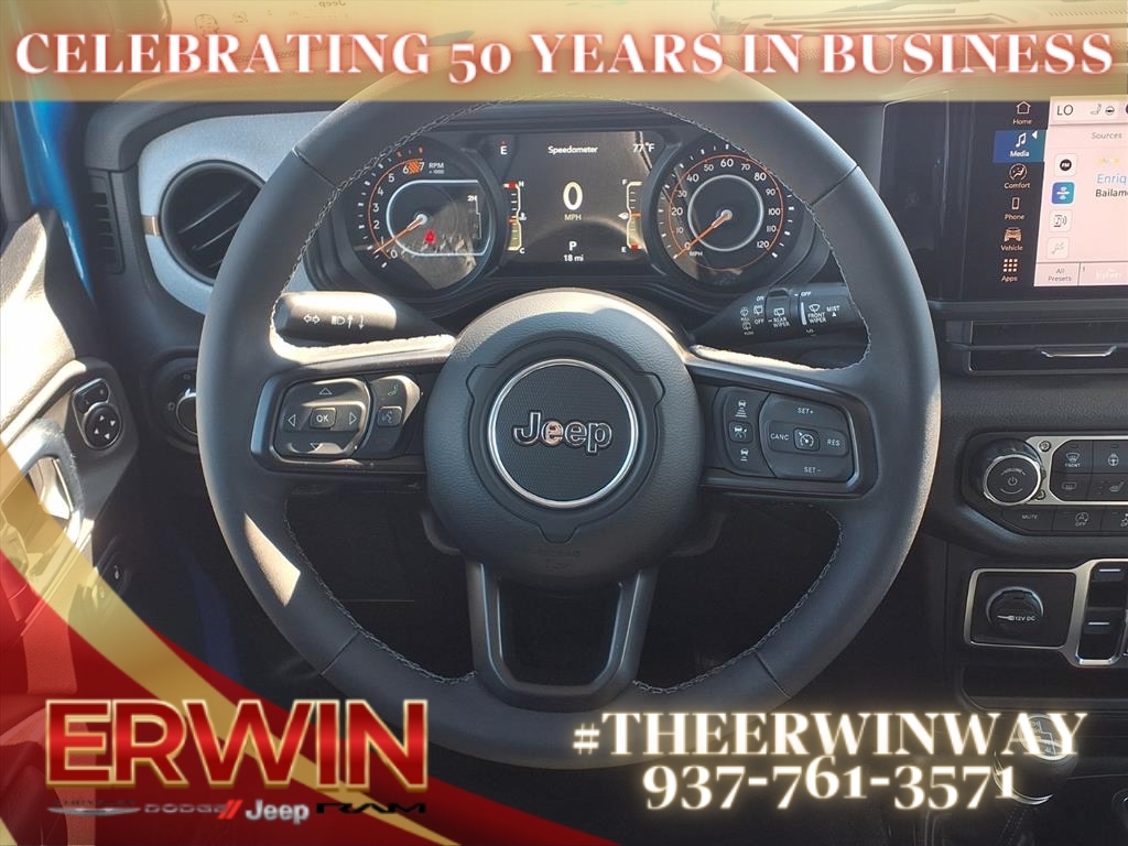 This 2025 Jeep Wrangler Sport Vehicle is a powerful and reliable 4x4 with a 3.6 liter 6 cylinder engine and sequential port fuel injection. It has a hydro blue pearl coat exterior and a black (x9) interior, making it a stylish and sophisticated ride. It also features touch screen display, Bluetooth audio connection, hill start assist, part time four wheel drive, Bluetooth phone connectivity, and more. This vehicle is sure to turn heads on the road and make any journey more enjoyable. Contact Details: Erwin Chrysler Dodge Jeep, 2775 S Co Rd. 25a, Troy, OH, 45373, pat@erwinchrysler.com, 9373355696.