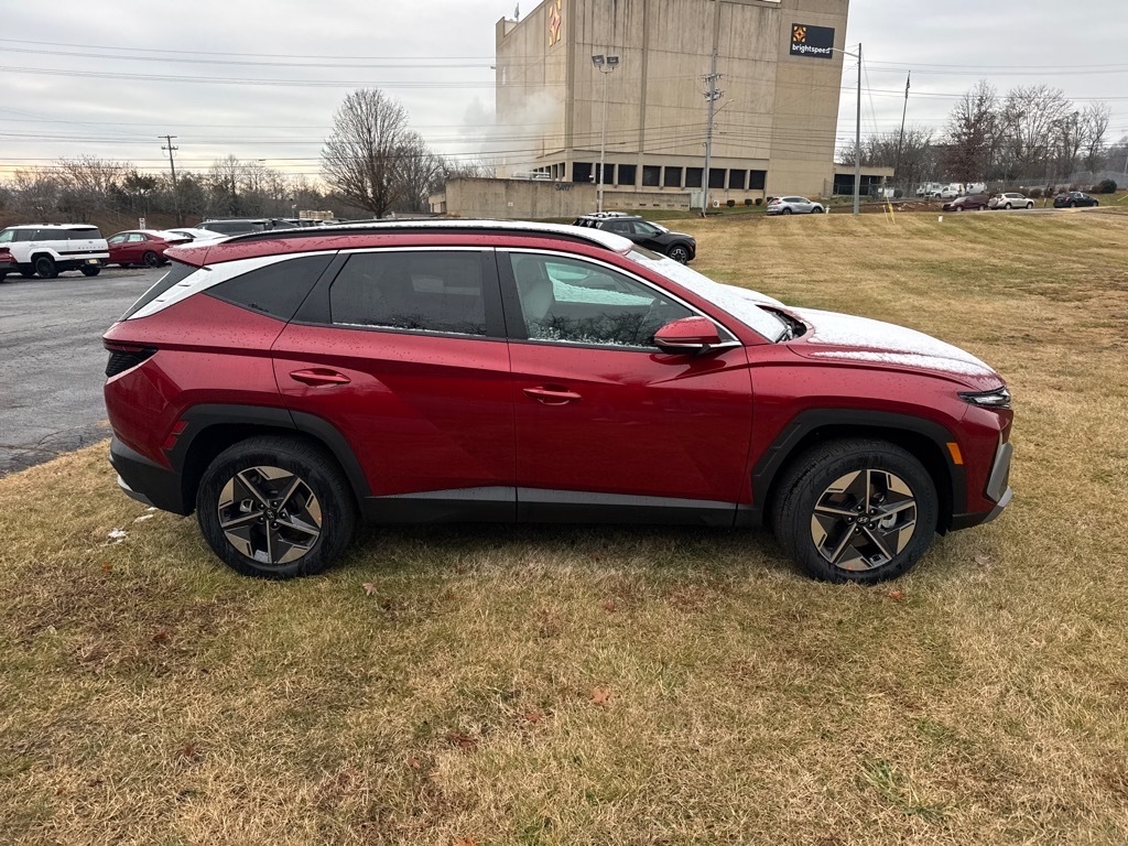 INFORMATION ABOUT THIS VEHICLE AND IT FEATURES:, AWD. Option Group 01, AWD, 18x 7.5J Alloy Wheels, 4-Wheel Disc Brakes, 6 Speakers, ABS brakes, Air Conditioning, All Season Fitted Liners, Alloy wheels, AM/FM radio: SiriusXM, Apple CarPlay & Android Auto, Auto High-beam Headlights, Auto-dimming Rear-View mirror, Automatic temperature control, Brake assist, Bumpers: body-color, Cargo Blocks, Cargo Net, Cargo Tray, Carpeted Floor Mats, Delay-off headlights, Driver door bin, Driver vanity mirror, Dual front impact airbags, Dual front side impact airbags, Electronic Stability Control, Emergency communication system: Bluelink , First Aid Kit, Four wheel independent suspension, Front anti-roll bar, Front Bucket Seats, Front Center Armrest, Front dual zone A/C, Front reading lights, Fully automatic headlights, H-Tex Leatherette Seat Trim, Heated door mirrors, Heated Front Bucket Seats, Heated front seats, Illuminated entry, Leather Shift Knob, Leather steering wheel, Low tire pressure warning, Navigation System, Occupant sensing airbag, Outside temperature display, Overhead airbag, Overhead console, Panic alarm, Passenger door bin, Passenger vanity mirror, Power door mirrors, Power driver seat, Power Liftgate, Power moonroof, Power steering, Power windows, Radio data system, Radio: AM/FM/HD Audio System, Rear anti-roll bar, Rear reading lights, Rear seat center armrest, Rear side impact airbag, Rear window defroster, Rear window wiper, Remote keyless entry, Security system, Speed control, Split folding rear seat, Spoiler, Steering wheel mounted audio controls, Tachometer, Telescoping steering wheel, Tilt steering wheel, Traction control, Trip computer, Turn signal indicator mirrors, and Variably intermittent wipers. Ultimate Red 2026 Hyundai Tucson SEL Premium AWD 8-Speed Automatic with SHIFTRONIC 2.5L I4 DGI DOHC 16V LEV3-SULEV30 187hp 24/30 City/Highway MPG