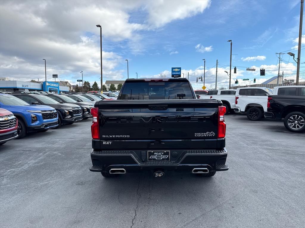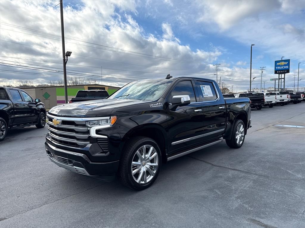 Beaty Chevrolet Company is honored to offer this trusty 2025 Chevrolet Silverado 1500 High Country in Black Beautifully equipped with High Capacity Suspension Package, Preferred Equipment Group 3LZ (10-Way Power Driver Seat w/Lumbar, 10-Way Power Passenger Seat Adjuster w/Lumbar, 12.3 Multicolor Reconfigurable Digital Display, 120-Volt Bed Mounted Power Outlet, 120-Volt Interior Power Outlet, 2 USB Data Ports, 2nd Row Heated Outboard Seats, Adaptive Cruise Control, Auto-Dimming Inside Rear-View Mirror, Auto-Locking Rear Differential, Bed View Camera, Bluetooth For Phone, Body-Color Painted Mirror Caps, Chevytec Spray-On Black Bedliner, Chrome Assist Steps, Chrome Recovery Hooks, Color-Keyed Carpeting Floor Covering, Deep-Tinted Glass, Driver Memory, Dual Exhaust w/Polished Outlets, Dual Rear USB Ports (Charge Only), Electric Rear-Window Defogger, Floor Mounted Center Console, Front Carpeted Floor Mats, Front LED Fog Lamps, Front Rain-Sensing Wipers, HD Surround Vision, Heated Driver & Front Outboard Passenger Seats, Heated Steering Wheel, Hitch Guidance w/Hitch View, In-Vehicle Trailering System App, Integrated Trailer Brake Controller, Keyless Open & Start, LED Cargo Area Lighting, OnStar Services Capable, Outside Heated Power-Adjustable Mirrors, Perimeter Lighting, Power Front Passenger Windows w/Express Up/Down, Power Front Windows w/Driver Express Up/Down, Power Rear Windows w/Express Down, Power Sliding Rear Window w/Rear Defogger, Power Tailgate, Power Tilt & Telescoping Steering Column, Rear Carpeted Floor Mats, Rear Cross Traffic Braking, Rear Pedestrian Alert, Rear Wheelhouse Liners, Remote Vehicle Starter System, Safety Alert Seat, SiriusXM w/360L Trial Subscription, Standard Tailgate, Steering Wheel Audio Controls, Teen Driver, Theft Deterrent System (Unauthorized Entry), Tire Pressure Monitoring System, Trailer Camera Provisions, Trailer Side Blind Zone Alert, Ultrasonic Front & Rear Park Assist, Universal Home Remote, Ventilated Driver & Front Passenger Seats, Wi-Fi Hot Spot Capable, and Wrapped Steering Wheel), Technology Package (15 Diagonal Multicolor Head-Up Display and Rear Camera Mirror), Trailering Package (Hitch Guidance), Up-Level Rear Seat w/Storage Package, 10-Speed Automatic, 4WD, Jet Black/Umber Leather, 170 Amp Alternator, 3 Years of OnStar Digital Services/Safety Services, 3.23 Rear Axle Ratio, 4-Wheel Disc Brakes, 7 Speakers, ABS brakes, Adaptive Ride Control Suspension, Air Conditioning, All-Weather Floor Liner (LPO),