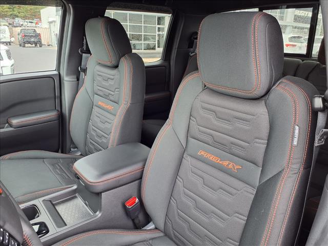 Check out all these great options: Telematics Delete Package (NissanConnect Services & Wi-Fi Hotspot Delete), 17 Painted Alloy Wheels, 3.692 Axle Ratio, 4-Wheel Disc Brakes, 6 Speakers, ABS brakes, Air Conditioning, Alloy wheels, AM/FM radio: SiriusXM, Anti-whiplash front head restraints, Auto High-beam Headlights, Automatic temperature control, Blind Spot Warning, Brake assist, Bumpers: body-color, Delay-off headlights, Driver door bin, Driver vanity mirror, Drop-In Bed Liner & Bumper Step, Dual front impact airbags, Dual front side impact airbags, Electronic Stability Control, Electronic Tailgate Lock, Emergency communication system, Essentials Kit, Front anti-roll bar, Front Bucket Seats, Front Center Armrest, Front dual zone A/C, Front fog lights, Front reading lights, Front wheel independent suspension, Fully automatic headlights, Illuminated entry, Knee airbag, Leather Shift Knob, Leather steering wheel, Low tire pressure warning, Occupant sensing airbag, Off-Road Style Step Rails, Overhead airbag, Overhead console, Panic alarm, Passenger door bin, Passenger vanity mirror, Power door mirrors, Power driver seat, Power passenger seat, Power steering, Power windows, PRO Embroidered Premium Cloth Seat Trim, PRO-4X Carpeted Floor Mats (DISC), Radio data system, Radio: SXM/AM/FM/AUX/USB Audio System, Rear anti-roll bar, Rear seat center armrest, Rear side impact airbag, Rear step bumper, Remote Engine Starter Accessory, Remote keyless entry, Security system, Speed control, Speed-sensing steering, Splash Guards (DISC), Split folding rear seat, Steering wheel mounted audio controls, Tachometer, Telescoping steering wheel, Tilt steering wheel, Traction control, Trip computer, Variably intermittent wipers, Voltmeter, and Wireless Apple CarPlay/Wireless Android Auto. Super Black 2025 Nissan Frontier PRO-4X 4WD 9-Speed Automatic with Overdrive 3.8L DI DOHC 24V V6Recent Arrival!