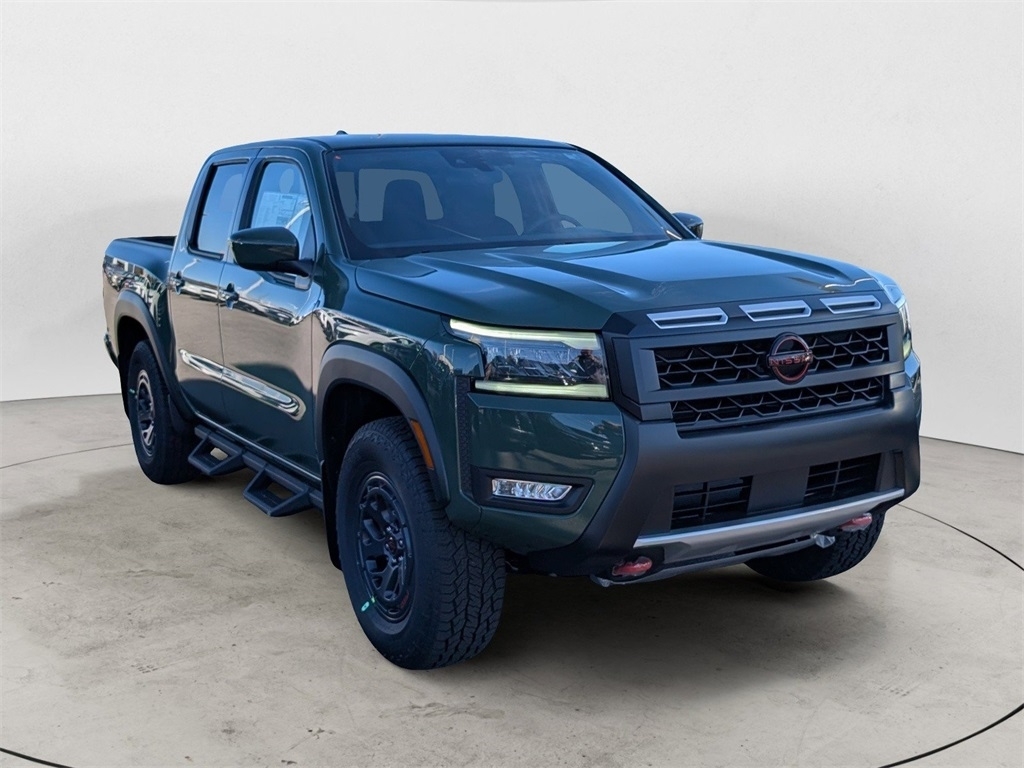 Tactical Green Metallic 2026 Nissan Frontier PRO-4X 3.8L DI DOHC 24V V6 4WD 4D Crew Cab 9-Speed Automatic with Overdrive * Bluetooth/Handsfree Calling *, * USB Adapter *, Frontier PRO-4X, 4D Crew Cab, 3.8L DI DOHC 24V V6, 9-Speed Automatic with Overdrive, 4WD, Tactical Green Metallic, Charcoal w/Lava Red Stitch w/PRO Embroidered Premium Cloth Seat Trim, Tow Package, 17Painted Alloy Wheels, 3.692 Axle Ratio, 4-Wheel Disc Brakes, 6 Speakers, ABS brakes, Air Conditioning, Alloy wheels, AM/FM radio: SiriusXM, Anti-whiplash front head restraints, Auto High-beam Headlights, Automatic temperature control, Blind Spot Warning, Brake assist, Bumpers: body-color, Delay-off headlights, Driver door bin, Driver vanity mirror, Drop-In Bed Liner & Bumper Step, Dual front impact airbags, Dual front side impact airbags, Electronic Stability Control, Emergency communication system, Essentials Kit, Front anti-roll bar, Front Bucket Seats, Front Center Armrest, Front dual zone A/C, Front fog lights, Front reading lights, Front wheel independent suspension, Fully automatic headlights, Heated Front Bucket Seats, Heated front seats, Heated steering wheel, Illuminated entry, Knee airbag, Leather steering wheel, Low tire pressure warning, Mud Flaps, Occupant sensing airbag, Off-Road Style Step Rails, Overhead airbag, Overhead console, Panic alarm, Passenger door bin, Passenger vanity mirror, Power door mirrors, Power driver seat, Power passenger seat, Power steering, Power windows, Premium Paint, PRO Embroidered Premium Cloth Seat Trim, PRO-4X Carpeted Floor Mats, Radio data system, Radio: SXM/AM/FM/AUX/USB Audio System, Rear anti-roll bar, Rear seat center armrest, Rear side impact airbag, Rear step bumper, Remote keyless entry, Security system, Speed control, Speed-sensing steering, Split folding rear seat, Steering wheel mounted audio controls, Tachometer, Telescoping steering wheel, Tilt steering wheel, Traction control, Trip computer, Variably intermittent wipers, Voltmeter, Wireless Apple CarPlay/Wireless Android Auto, Frontier PRO-4X, 4D Crew Cab, 3.8L DI DOHC 24V V6, 9-Speed Automatic with Overdrive, 4WD, Tactical Green Metallic, Charcoal w/Lava Red Stitch w/PRO Embroidered Premium Cloth Seat Trim, Tow Package. Discover the latest in automotive innovation at Mtn View Nissan, a premier destination for new Nissans and a proud member of the esteemed Mtn View Auto Group with locations in Chattanooga, Cleveland, and Dalton, GA. Explore our showroom to find the perfect new Niss